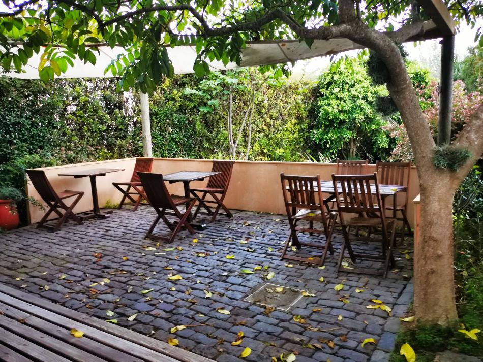 Das Zimmer befand sich im “ersten Stock”, obwohl es kein richtiges “Hauptgebäude” mit eigenem Eingang gibt. Stattdessen gibt es draußen Holztreppen, die zu Holzwegen führen, über die die einzenen Appartments zu erreichen sind. Das hat definitiv auch etwas vom Charme der Unterkunft ausgemacht. Direkt, wenn man die Tür aufmachte, stand man quasi im Garten.