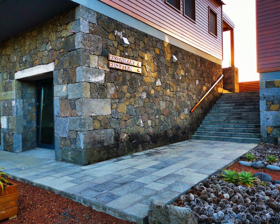 Angrenzend an den Parkplatz ist der öffentliche Hotel-Bereich. Über eine kurze Treppe kamen wir hier an die Rezeption, wo uns ein sehr netter Mitarbeiter begrüßte und uns die Unterkunft erklärte. Dazu bekamen wir von der Unterkunft noch eine eigene Pico-Karte, auf der eigene Highlights und Sehenswürdigkeiten vermerkt waren. Hier hat uns auch der Mitarbeiter noch einmal seine Highlights und Tipps gezeigt.