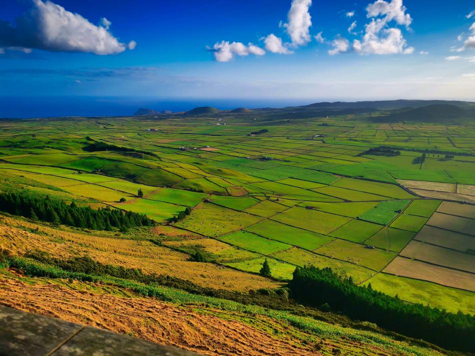 Gigantischer Aussichtspunkt auf knapp 550 m Höhe auf die weiten Felder von Terceira