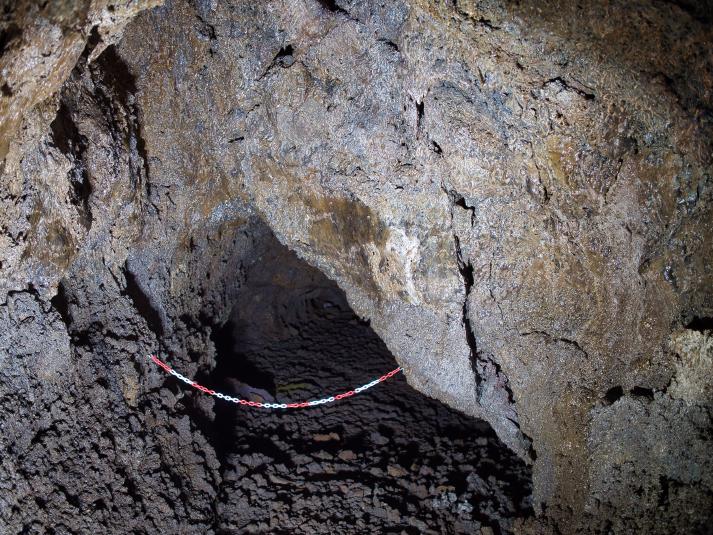 Großer Vulkanschlot, der als Höhle besichtigt werden kann