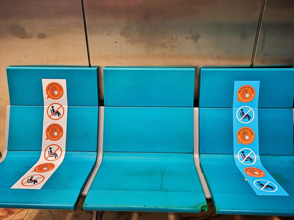 Ca. 3 Stunden vor Abflug waren wir also am Flughafen – auch, wenn wir innerhalb von Europas reisten, wollten wir wegen erhöhter (Hygiene-)kontrollen rechtzeitig da sein. Wir waren die zweiten am Check-in Schalter und noch weit vor dem Mitarbeiter der Airline TAP da, der unser Gepäck in Empfang nehmen sollte. Eingecheckt hatten wir am Tag zuvor bereits online.