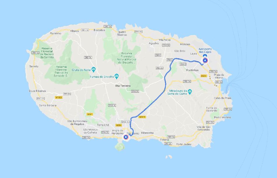 Der nette Herr am Mietwagenschalter “Autatlantis Terceira Mietwagen” hat schon auf uns gewartet, denn anscheinend waren wir die einzigen und letzten Gäste des Tages, die einen Mietwagen in Empfang nehmen wollten. Die Unterlagen waren schon vorbereitet. Positiv anzumerken ist, dass uns hier niemand irgendwelche zusätzlichen Versicherungen oder ein teures Upgrade auf einen besseren Mietwagen verkaufen wollte. Nachdem er Lauras Führerschein kopiert hat, hat er uns zum kleinen und süßen Citroën C1 begleitet. Wir haben einen Neuwagen bekommen, der bisher ganze 370 km gefahren ist.