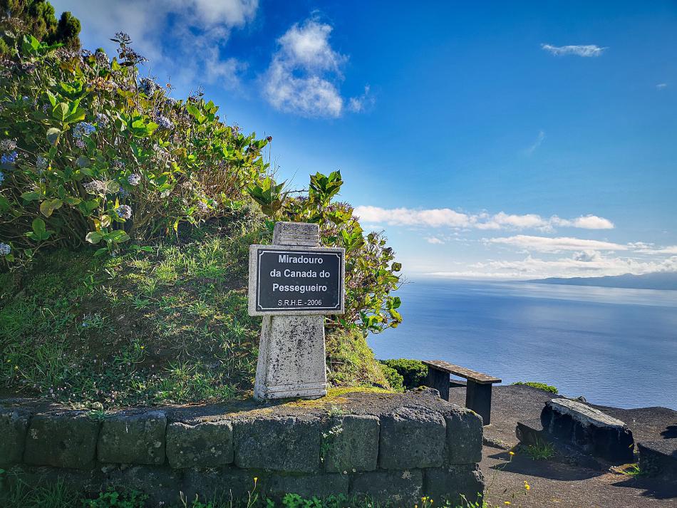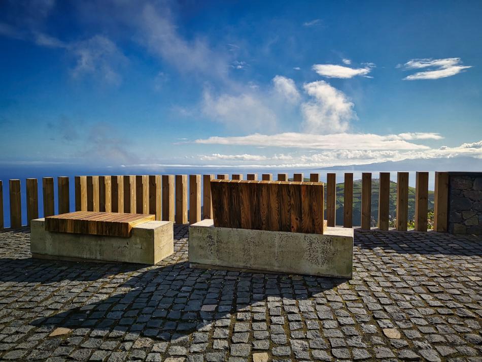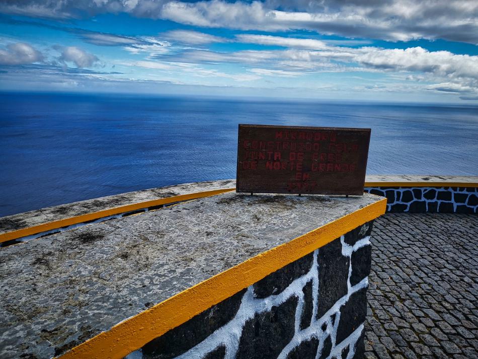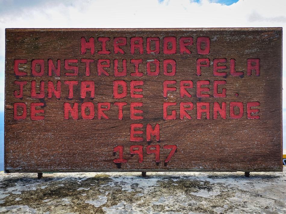 Als wir in Norte Grande über die Straße in Richtung Fajã do Ouvidor gefahren sind, gab es direkt einen Wegweiser, der ein MIRADOURO ausschilderte. Den mussten wir natürlich mitnehmen, sodass wir dem Wegweiser nach links gefolgt sind und so an einem Miradouro ankamen, der ein Schild mit der Aufschrift MIRADOURO CONSTRUIDO PELA JUNTA DE FREG DE NORTE GRANDE EM 1997, was wir mit unseren miserablen Portugiesischkenntnissen erst für den Namen des Aussichtspunktes hielten.