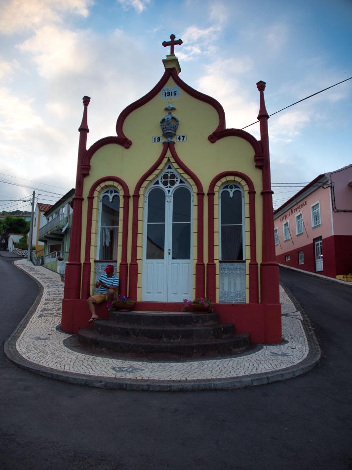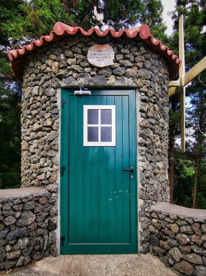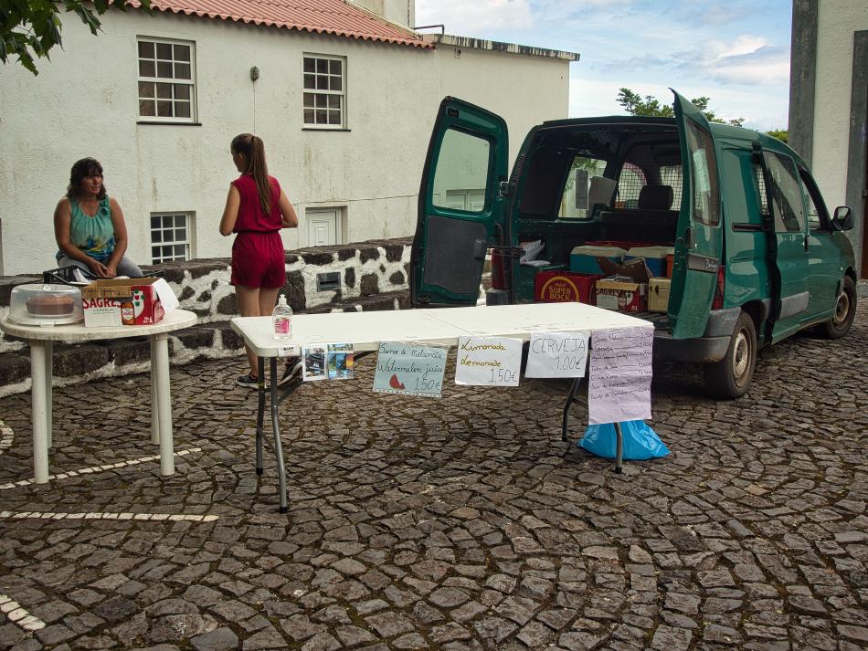 Der letzte Stopp in diesem Fajã, den wir nun auf dem Weg zurück zum Auto erreichten, war der Platz vor der Kirche, an dem die beiden Damen ihre Getränke und ihren Kuchen verkauften. Hinter der Kirche gab es einen ziemlich modernes Toilettengebäude, das wir beide dankend annahmen, um Platz für die Getränke zu schaffen, die vor der Kirche angeboten wurden.