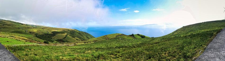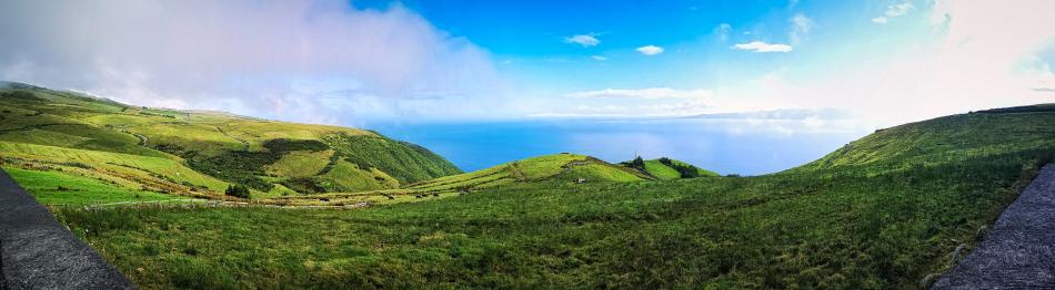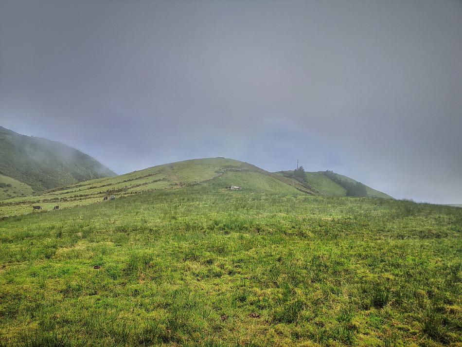 Der nächste Aussichtspunkt, an dem wir kurz angehalten haben, lag immer noch an der Hauptstraße, die nach Osten führte. Im Prinzip war die Aussicht von hier sehr ähnlich zu der Aussicht vom Miradouro Pedras Brancas – nur dass die vielen kleinen Hügel, die die Teletubbie-Landschaft der Azoren prägen, hier viel mehr zum Vorschein kamen.
