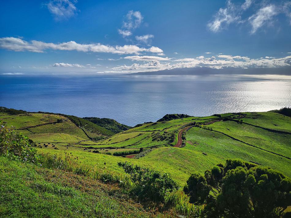 São Jorge besteht praktisch aus einem einzigen langgezogenen Bergrücken, an dessen Seiten die unzähligen Fajãs liegen. An diesem Tag wollten wir einige der besser zu erreichenden Fajãs besuchen, wobei die Routenplanung mithilfe von Google Maps praktisch gar nicht möglich war, da Google viele der kleinen Straßen, die in Serpentinen hinunter in die Fajãs führen, gar nicht kennt. Auf dieser Insel macht OpenStreetMap eindeutig einen viel besseren Job.