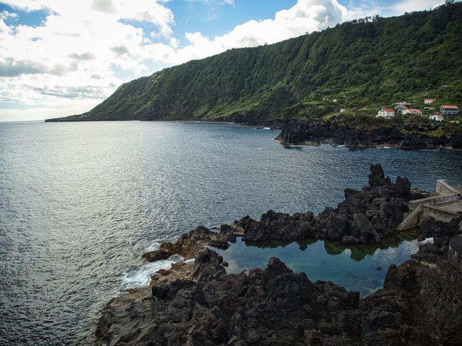 Nachdem wir alles aufgetrunken hatten und auch ein Eis gegessen hatten, ging es für uns weiter, noch einmal auf die andere Seite des Fajãs. Hier stand, wie wir bereits gesehen hatten, die Kirche und hinter der Kirche gab es, wie fast überall, wo man ans Meer kommt, eine Badezone, die bei diesem Wetter auch gut angenommen wurde.