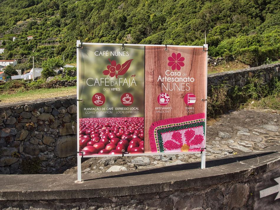 Wir sind zunächst nach rechts gefahren. Ein Café in einem Fajã, in dem Kaffee produziert wird, klingt vielversprechend. Die Google Rezensionen verrieten uns dann, dass es sich bei dem Cafe Nunes tatsächlich um eben jenes Café handelt, das den eigens produzierten Kaffee verkauft.