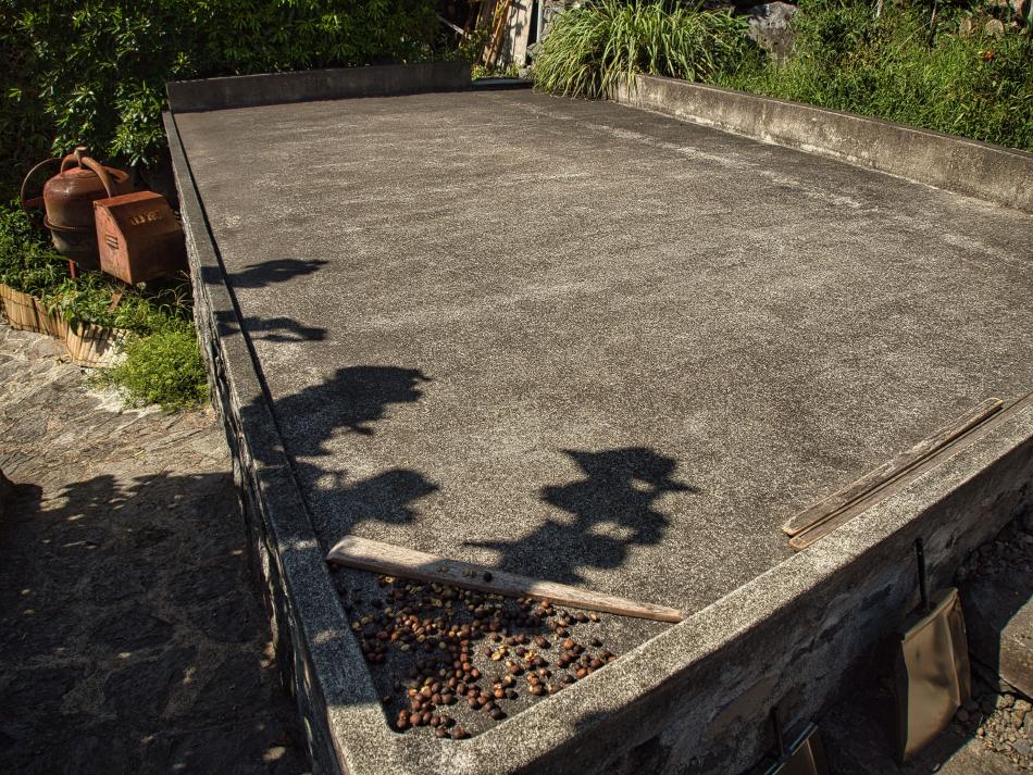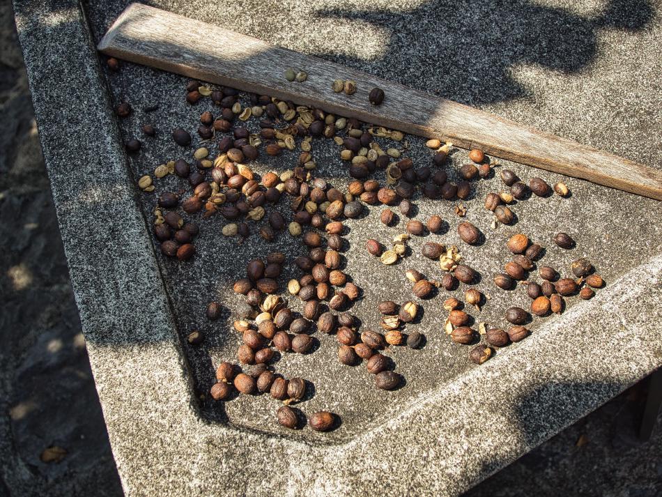 Leider waren die Pflanzen gerade alle geerntet, sodass man an den Bäumen keine Bohnen mehr sehen konnte, aber auf einer Betonfläche lagen ein paar Bohnen in ihren verschiedenen Reifestufen ausgelegt. Der Mann erzählte, dass der Kaffee jedes Jahr geerntet, dann getrocknet und gesäubert wird. Die ganze “Führung” war kostenlos auf dem Dach des Gebäudes, in dem auch das Café liegt. Hier auf dem Dach standen auch einige Kaffeebäume und sogar Feigenpalmen.