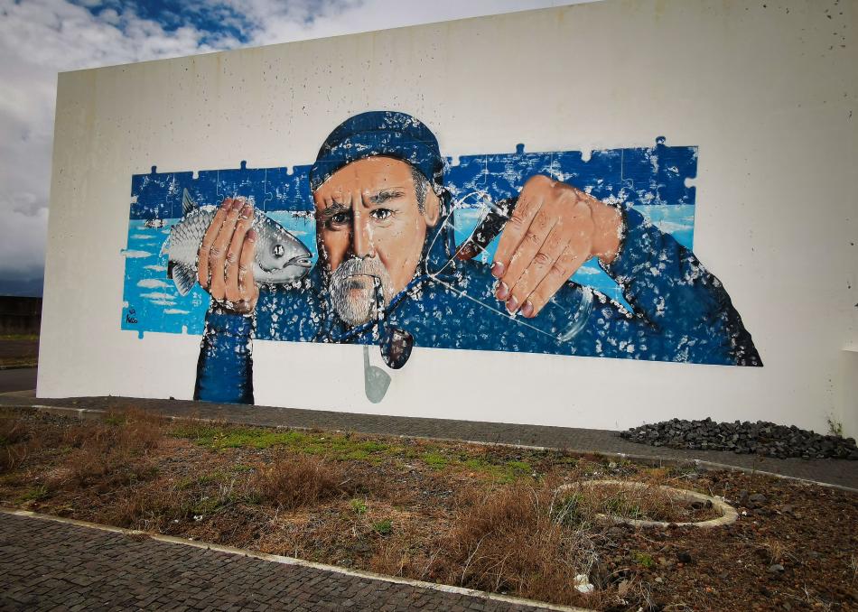 An einem großen Gebäude in unmittelbarer Hafennähe, war an der Wand ein riesiges Kunstwerk aufgemalt, das eine Krake zeigte, die gegen einen Wal kämpfte. Gegenüber, an einem großen Parkplatz, zierte ein weiteres Bild eine Wand. Laura hatte fälschlicherweise die Information, dass es sich bei dem großen Gebäude, an dem der Schriftzug MUNICIPAL DA MADALENA zu lesen war, um ein Museum handeln würde. In Madalena soll es nämlich ein Museum über einen Menschen geben, der aus Pico kommt und gegen den Walkampf gekämpft hat. Ehrlicherweise haben wir das aber leider in unserer Zeit auf Pico nicht gefunden.