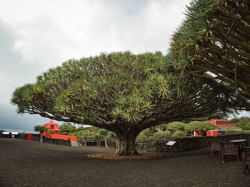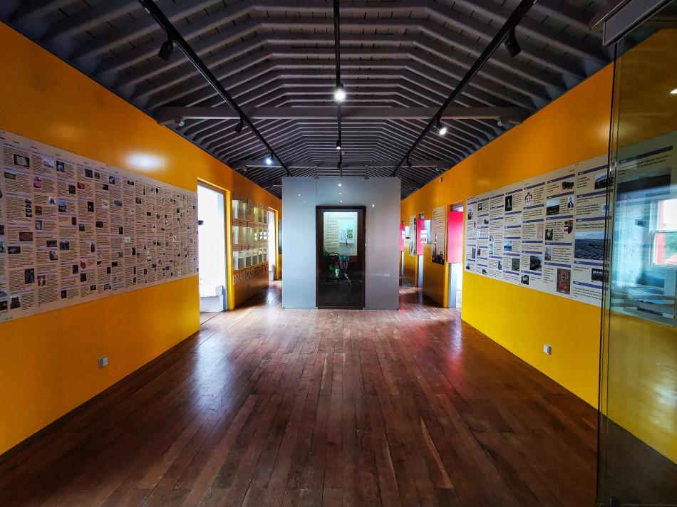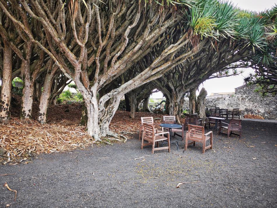 Im Eingangsbereich des Museums lag ein großzügiger Hof, an dessen Ende riesige Drachenbäume standen, unter denen auch einige Tische und Stühle standen, die jedoch gerade unbenutzt waren. Auf der linken Seite begann die Ausstellung und auf der rechten Seite war ein langgezogenes Gebäude, in dessen vorderen Teil eine Art Rezeption und Kasse war. Für 2 € pro Person haben wir hier unseren Eintrittspreis entrichtet, woraufhin direkt ein Mitarbeiter mit uns raus gekommen ist und uns auf gleichermaßen schlechten wie schwer zu verstehendem Englisch erklärt hat, wo wir was finden würden. Zudem haben wir noch ein Heft aus einlaminierten A4-Zetteln bekommen, in dem jede Informationstafel mit einer deutschen Übersetzung abgedruckt war. Vorbereitung können sie hier offenbar.