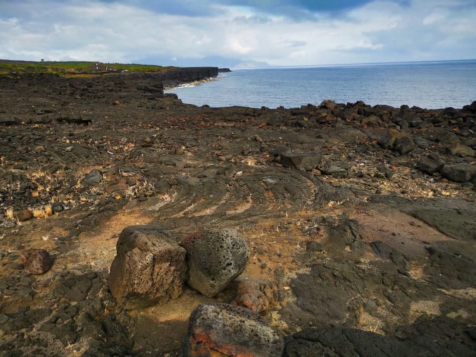 Beim Einchecken am Tag zuvor hat uns der Mitarbeiter noch ein paar Tipps gegeben, wo man gut hinfahren könnte und was sich lohnt. Dabei haben wir noch einen kleinen A4-Ausdruck der Karte von Pico bekommen mit einigen “Geheimtipps” der Unterkunft. Auf dieser Karte war an der Nordküste ein Ort namens Cachorro mit dem Text Where is the dog? vermerkt, den wir auch in unserer Vorrecherche bereits gefunden hatten. Der Mitarbeiter hatte erklärt, dass die Klippen hier einen Hund formen würden und man diesen finden würde, wenn man etwas Kreativität mitbringt.
