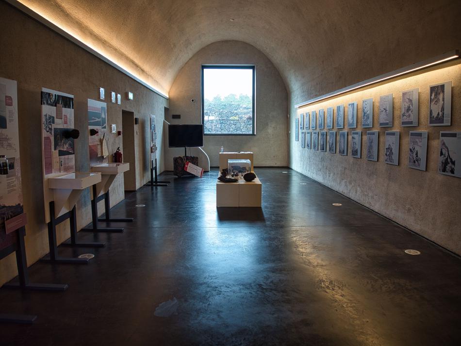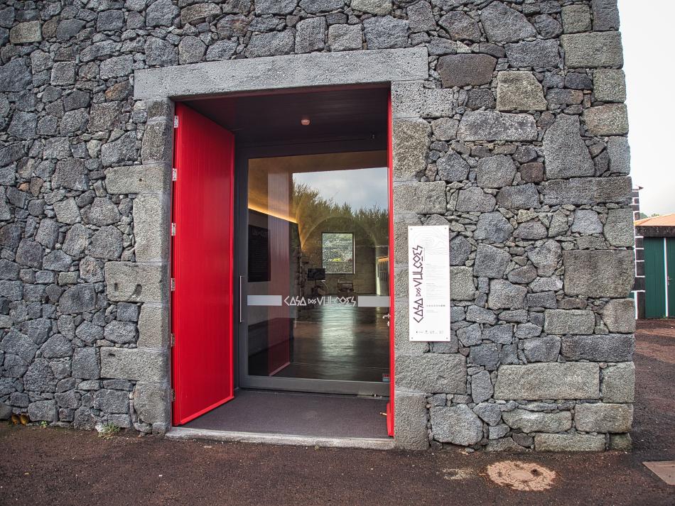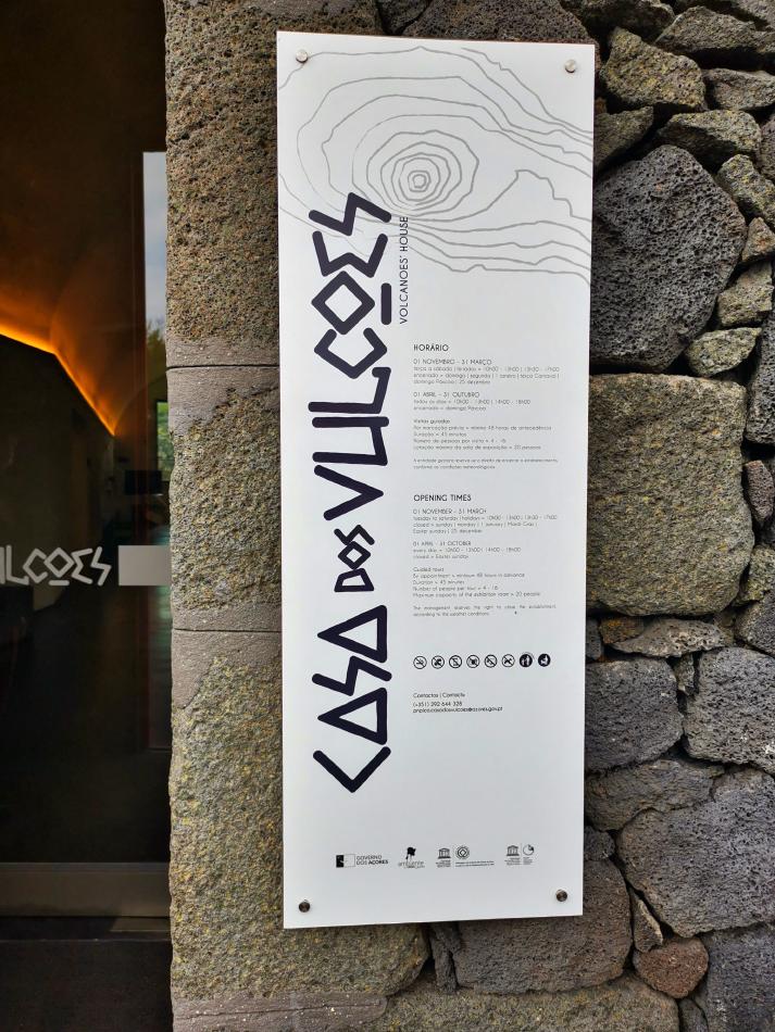 Hinter Cachorro sind wir ein ganzes Stück am Flughafen von Pico entlang gefahren, bis wir in einer engen Siedlung angekommen sind, die wirklich speziell aussah. Ähnlich wie schon im Weinmuseum am Vortag waren hier alle Gebäude aus dem dunklen Lavastein erbaut und alles, was gerade kein Stein oder Glas war, hatte denselben orange-roten Farbton, wie bereits das Weinmuseum. Das sah alles ziemlich gut aus, und sollte des Touristen wohl symbolisieren, dass es sich hier wieder um Weinanbau handelt. (Wir erinnern uns an das Design vom Vortag am Museu do Vinho do Pico ) In dieser kleinen Siedlung, die Lajido heißt, lag ein noch ziemlich neues Vulkanmuseum, das Casa dos Vulcões, was unser erster “richtiger” geplanter Stopp an diesem Tag war. Vor dem Eingang des Museums waren am Seitenstreifen der Straße noch einige Parkplätze frei – wir waren aber auch schon ziemlich früh hier. Es war gerade einmal 10:10 Uhr und das Museum somit erst seit 10 Minuten geöffnet. Dementsprechend wenig war hier auch erst los. Ich glaube, dass noch nicht einmal alle Mitarbeiter da waren, als wir hier ankamen.