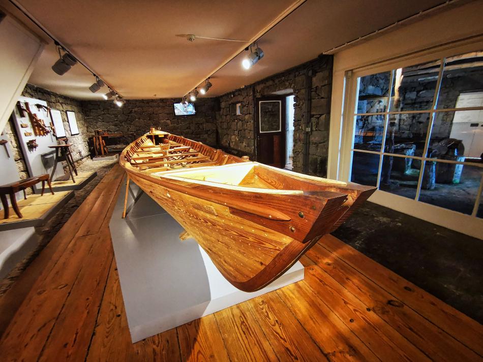 Am Museum sind wir gegen 12:50 Uhr angekommen – was sich als sehr passend herausgestellt hat. Um 13:00 Uhr begann nämlich die nächste Vorführung eines alten Dokumentarfilms, der den Walfang zeigte. Ein Dokumentarfilmer hatte hier unter anderem einige Portraits von am Walfang beteiligten Menschen gedreht. Darüber hinaus wurde in diesem Film gezeigt, wie vom Walbeobachtungsposten über Signalraketen alle Walfänger über einen Wal informiert wurden und wie schnell diese all ihr Werkzeug zu Hand hatten und in ihren Booten zum Wal fuhren, um diesen zu erlegen.