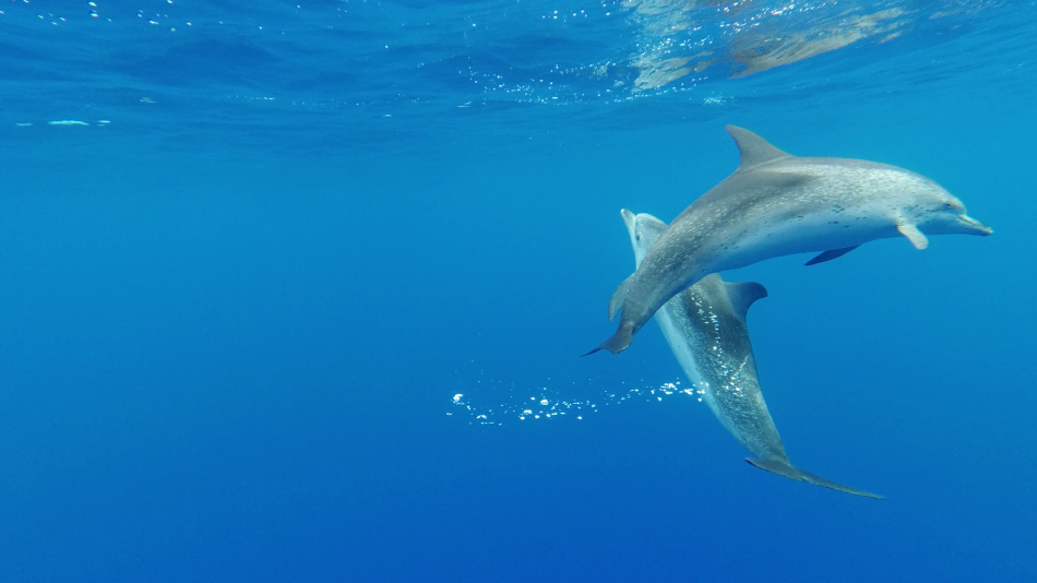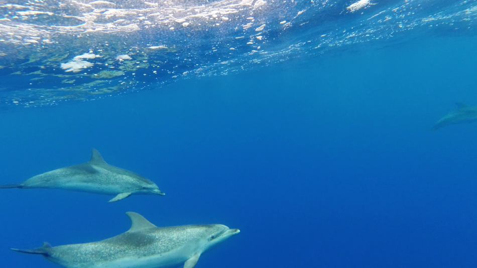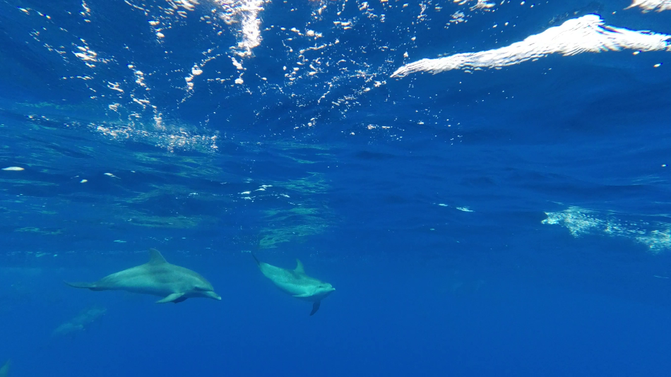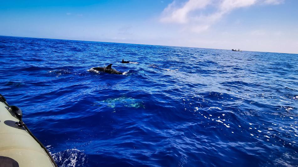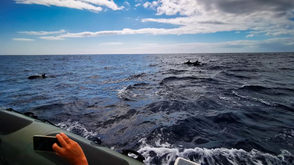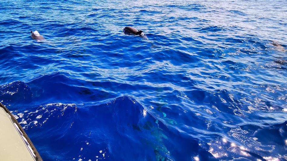Nachdem wir die Wale gesehen hatten, sind wir noch zu den Delfinen gefahren. Die neugierigen Tiere sind hier sogar ein Stück gemeinsam mit uns geschwommen. Wir mussten praktisch nur die Kamera ins Wasser halten, um die Delfine aus nächster nähe zu filmen. Aus dem Boot heraus konnten wir sogar den Quiek-Lauten der Tiere lauschen. Ein grandioses Erlebnis.