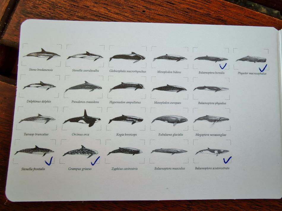 Wieder an Land haben wir die Schwimmwesten ausgezogen und sind wieder ins Ladenlokal, wo es für jeden noch ein kühles Getränk gab und noch ein kleines Zertifikat, in dem noch einmal markiert war, welche Wale wir auf diesem Ausflug alle gesehen haben.