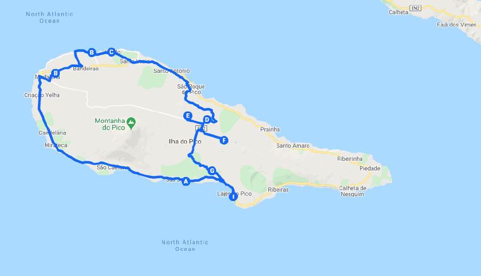 Beim Einchecken am Tag zuvor hat uns der Mitarbeiter noch ein paar Tipps gegeben, wo man gut hinfahren könnte und was sich lohnt. Dabei haben wir noch einen kleinen A4-Ausdruck der Karte von Pico bekommen mit einigen “Geheimtipps” der Unterkunft. Auf dieser Karte war an der Nordküste ein Ort namens Cachorro mit dem Text Where is the dog? vermerkt, den wir auch in unserer Vorrecherche bereits gefunden hatten. Der Mitarbeiter hatte erklärt, dass die Klippen hier einen Hund formen würden und man diesen finden würde, wenn man etwas Kreativität mitbringt.