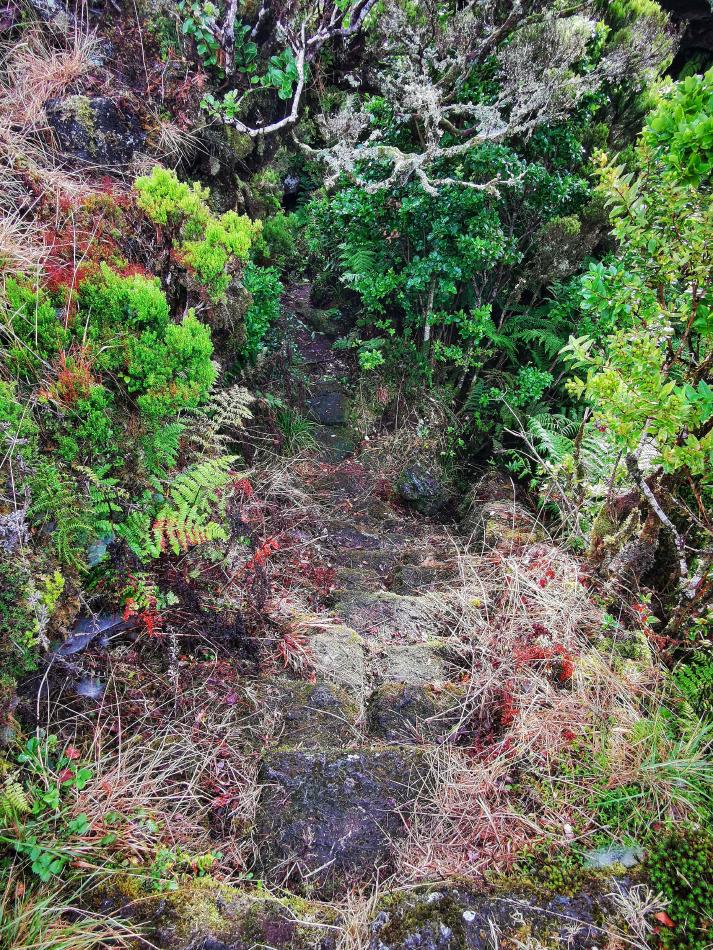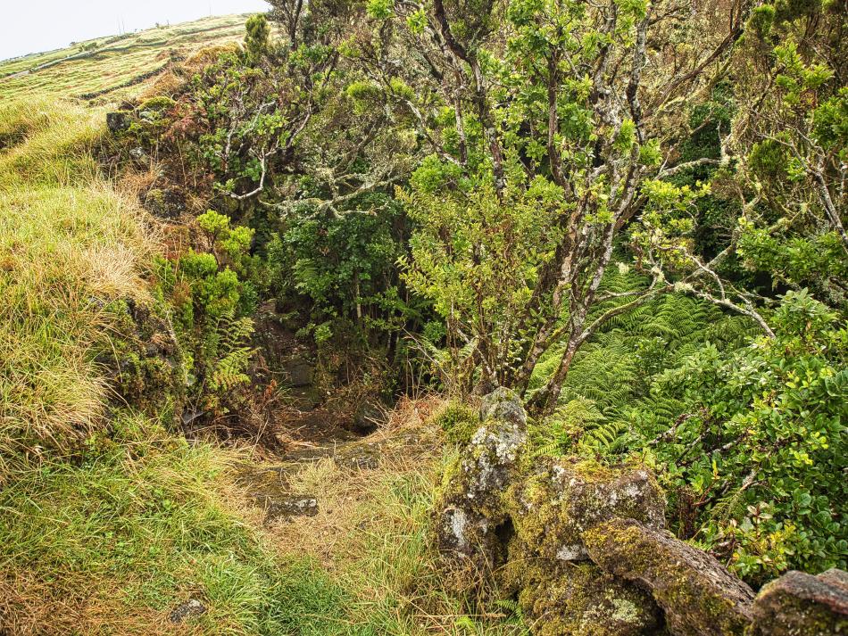 Je weiter es dies Treppe hinunter ging, desto dichter bewachsen war der ganze Bereich hier. Es war aber richtig spannend zu sehen, wie tief es hier runter ging, irgendwann war die “Oberfläche” ziemlich weit weg und Paul komplett im Loch verschwunden. Die gleichermaßen dichten wie feuchten Pflanzen haben auch einen Großteil des Schalls absorbiert, sodass wir auch nicht mehr richtig kommunizieren konnten.