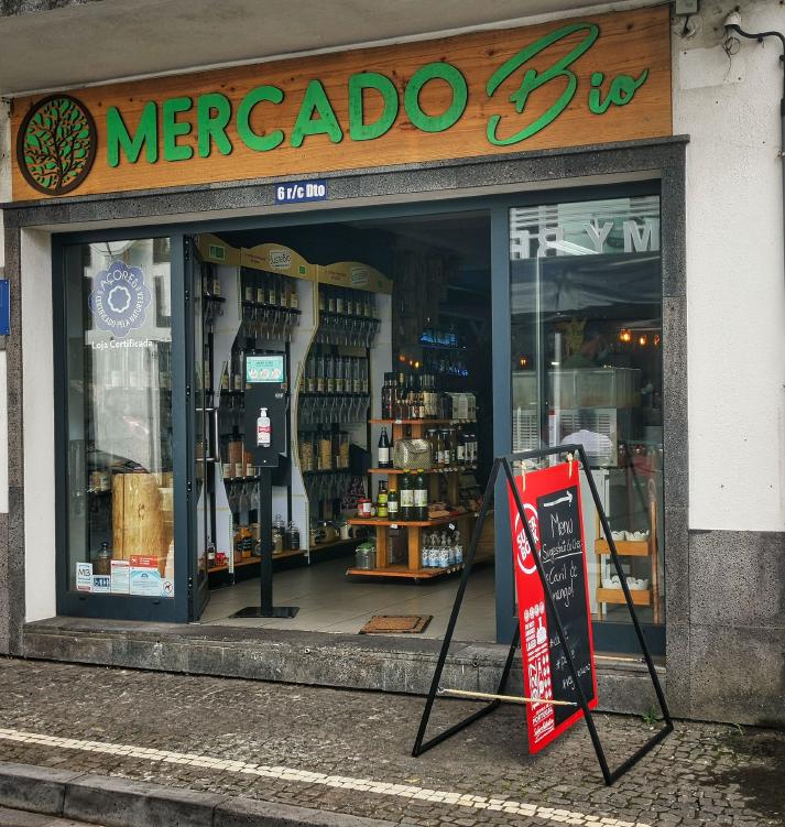 Wir hatten ja bereits am Hafen sitzend etwas nach einer Essensmöglichkeit geschaut. Laura hatte herausgefunden, dass der Mercado Bio, also ein Biomarkt im Ort, frisches Essen serviert, was wir ausprobieren wollten. Für Abends hatten wir nämlich ein Menü in unserer Unterkunft gebucht.