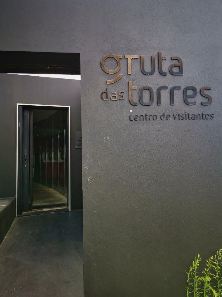 Die Gruta das Torres ist eine vollkommen naturbelassene Höhle, die man nur mit einer Führung besuchen durfte. Führungen wurden mehrmals täglich angeboten, wobei die Frequenz wegen Corona etwas zurückgefahren wurde. Auf diese Weise war unsere Gruppe recht groß – als wir hier im modernen Eingangsgebäude ankamen waren bereits einige weitere Leute da, die mit uns die Tour machen wollten.