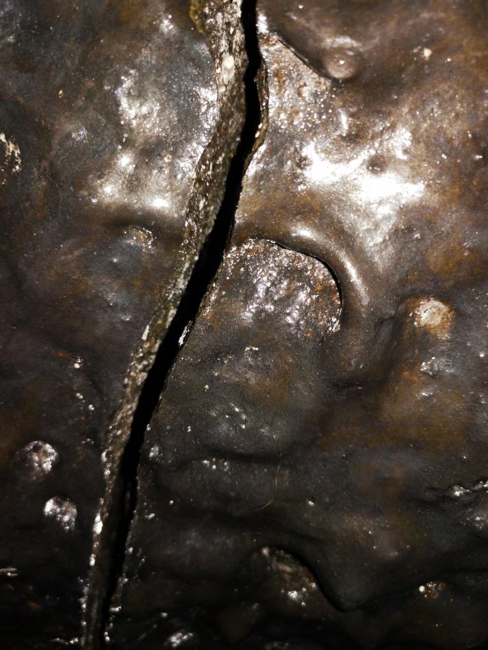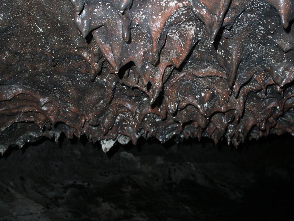 An der Decke gab es immer wieder Stalaktiten, also Gesteine, die sich aus den Mineralien des Wassers bilden, das von der Decke tropft (siehe Konzept einer Tropfsteinhöhle) – die Steine sind ziemlich Spitz und einer der Gründe, warum es sich lohnt hier in der Höhle einen Helm zu tragen. Über die Zeit sind aber auch schon einige Stalaktiten abgebrochen, weil jemand dagegen gelaufen ist – ziemlich schade, weil das Abbrechen recht schnell geht und zum Wachsen Jahrhunderte vergehen.