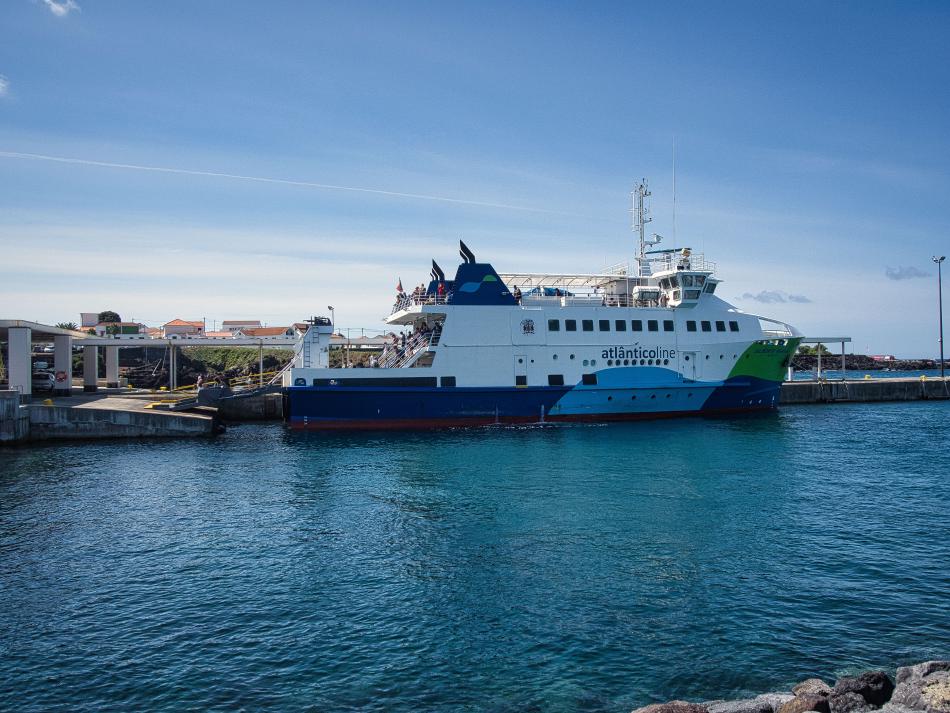 Vom Pier aus konnte man über das Fährterminal hinweg übrigens die Türme der Kirche in Madalena sehen – mit dem Pico im Hintergrund. Credits für dieses Bild gehen an Laura: