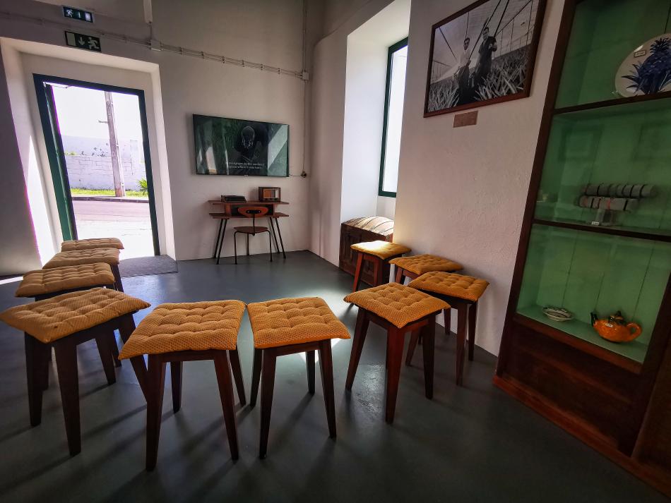 Nachdem wir mit der kurzen kostenlosen Führung fertig waren, zeigte uns der Mitarbeiter noch einen kurzen Film, der halb Imagefilm der Plantage und halb wirklich informativ war. Wir haben dann hier noch eine Ananas-Kima (Kima ist der lokale Softdrink der Azoren und kommt direkt aus Ponta Delgada) getrunken und nochmal gefragt, ob wir auch alleine nochmal durch die Gewächshäuser laufen dürften – was der Mitarbeiter bestätigt hat.