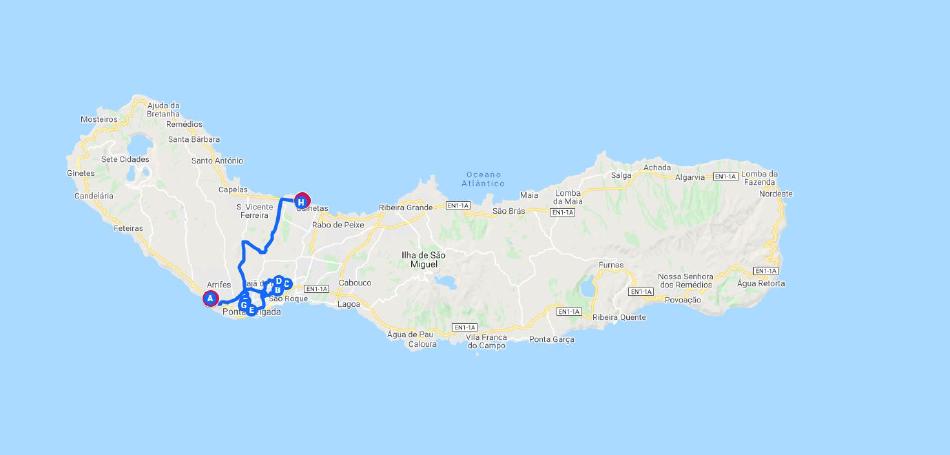 Da sich unsere Unterkunft im Norden von São Miguel befand und der Flughafen im Süden, haben wir uns entschieden, erst den Süden um die Hauptstadt Ponta Delgada zu erkunden, um erst später nach Norden zu unserem Hotel zu fahren.