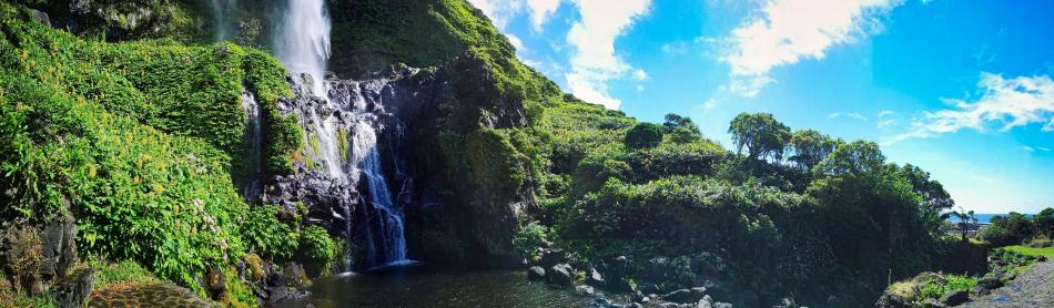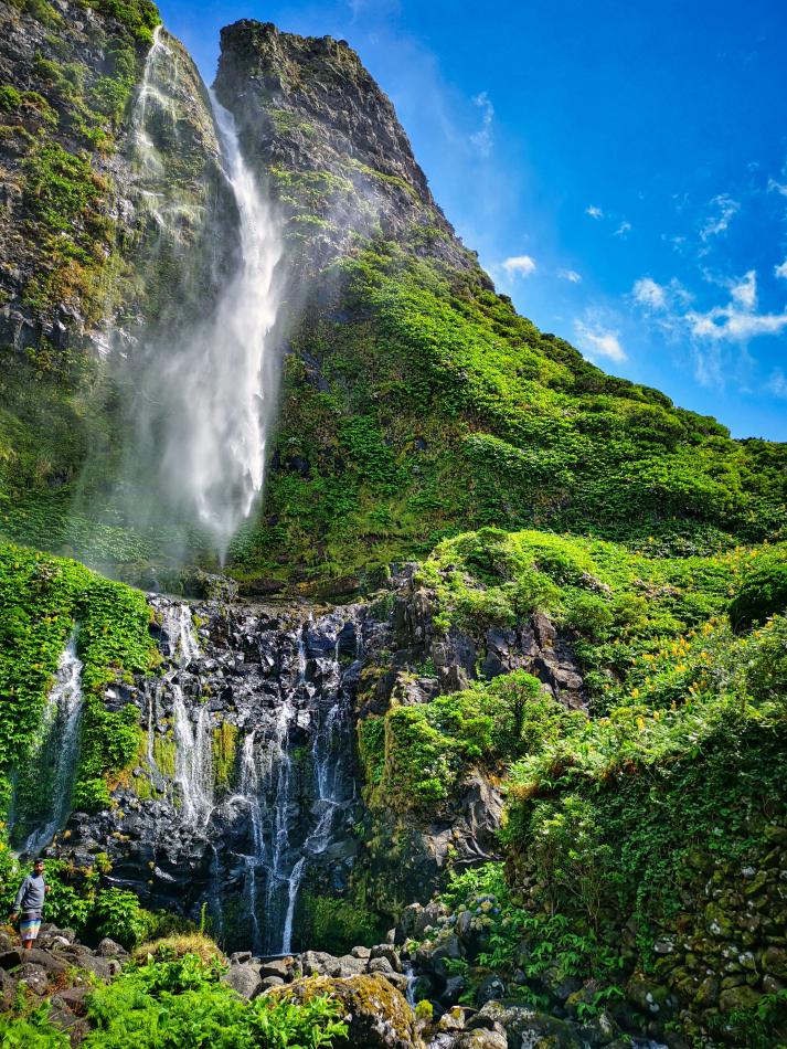 Poço Ribeira do Ferreiro befindet sich wieder auf der anderen Seite von Fajã Grande, aber auch nur 2 km von unserer Unterkunft entfernt. Viele Straßen gibt es hier auf Flores gar nicht, weshalb wir an dem Parkplatz, auf dem man das Auto abstellt, um zu den Wasserfällen zu laufen, auf dem Hinweg sogar schon vorbei gekommen sind. Wir haben ihn nur noch nicht unbedingt richtig zuordnen können.