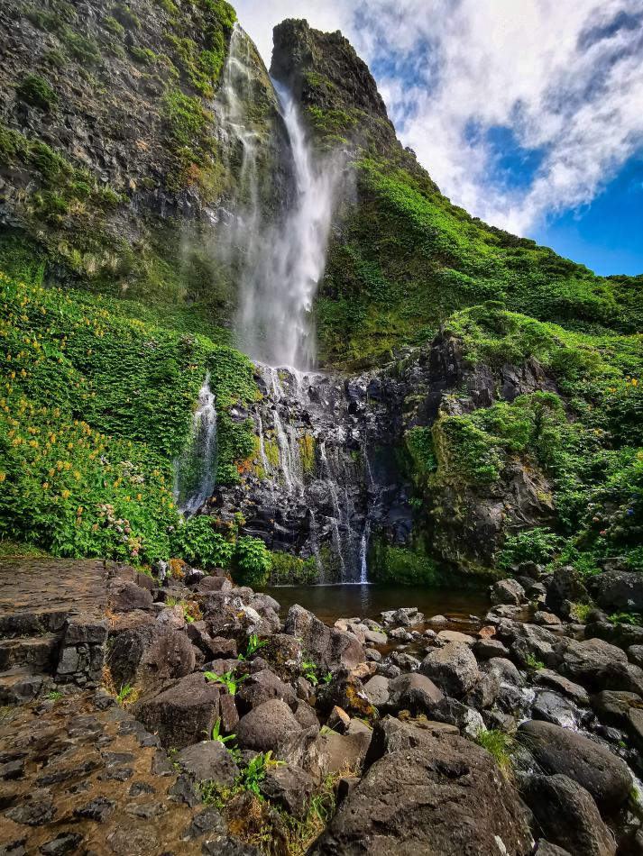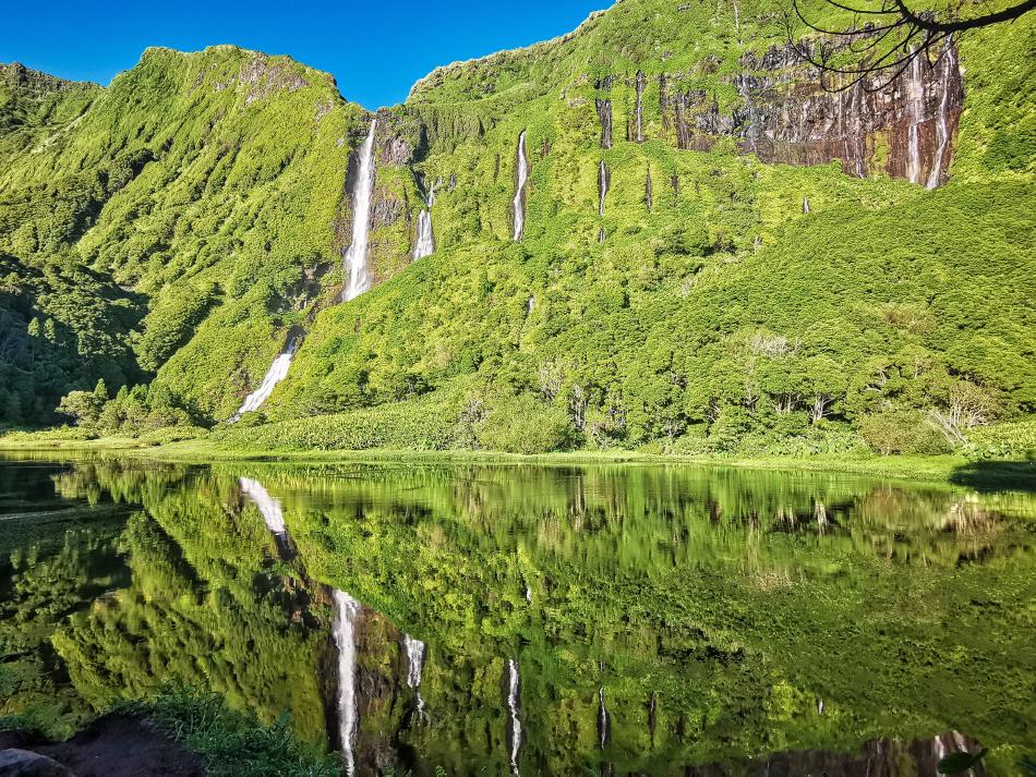 Abgesehen davon, dass es im Schatten so langsam etwas frisch wurde, haben wir uns aber überlegt den Abend noch zu nutzen, um das Highlight von Flores zu besichtigen: Die unzähligen Wasserfälle bei Poço Ribeira do Ferreiro.