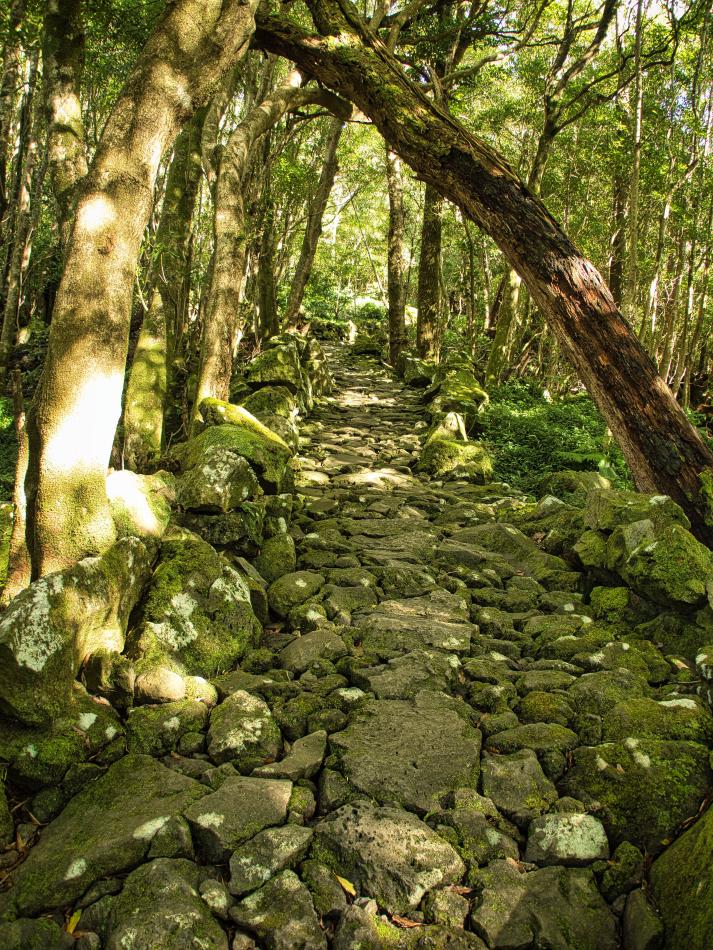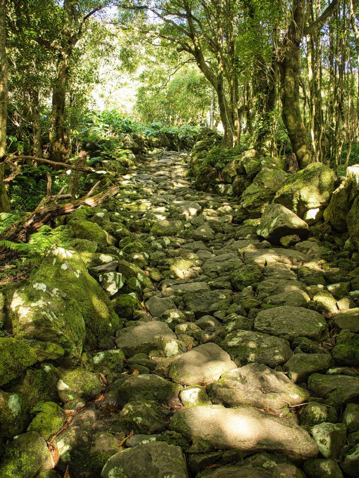 Vom Parkplatz aus ist der Weg zu den Wasserfällen ziemlich gut ausgeschildert. Der Trail beginnt kurz hinter einer kleinen Autobrücke und verläuft erst über etwas Rindenmulch. Recht schnell beginnt aber eine Treppe aus dicken Steinen, über die man auf Dauer auch einige Höhenmeter macht. Nach unserer Wanderung haben wir mal nachgeschaut: