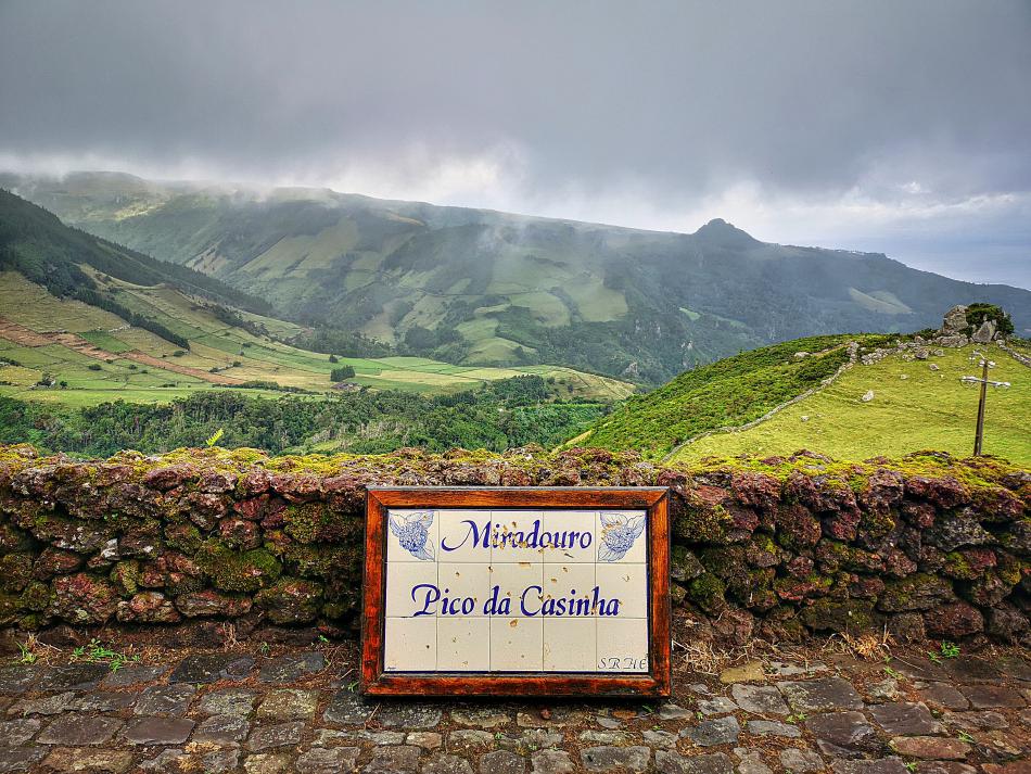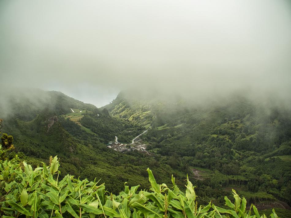 Etwas frustriert sind wir dann weiter über die Bergstraße in Richtung Flughafen gefahren, trotz dass wir gnadenlos zu früh waren. Auf dem Weg nach Santa Cruz das Flores wurde der Nebel ganz langsam, aber konstant immer weniger, sodass wir – die Zeit hatten wir ja – noch an ein paar Miradouros angehalten haben, um noch ein paar Fotos zu machen.