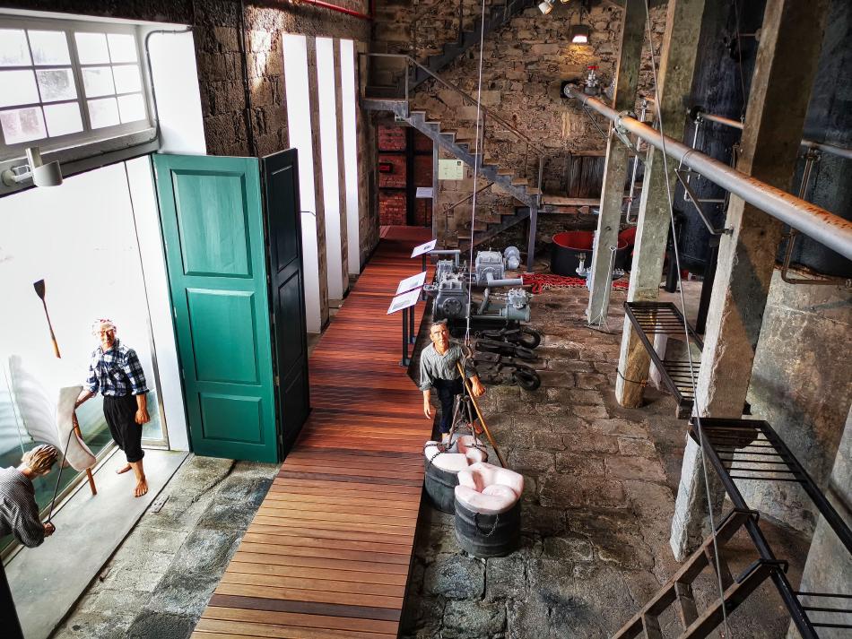 Als beeindruckendste Ausstellungsstücke (neben den großen Maschinen) würden wir die verschiedenen Waffen benennen, also Lanzen und Harpunen, mit denen die Tiere gejagt wurden; die Sägen mit denen sie zerlegt wurden und die zwei verschiedenen Öle, die aus dem Körperfett und aus der Fettblase im Kopf von Buckelwalen gewonnen wurde. Auch das große Tor, durch das die Riesen früher in die Fabrik hinein gezogen wurden war hier noch zu sehen. Alles in allem inhaltlich ziemlich spannend und gut aufbereitet.