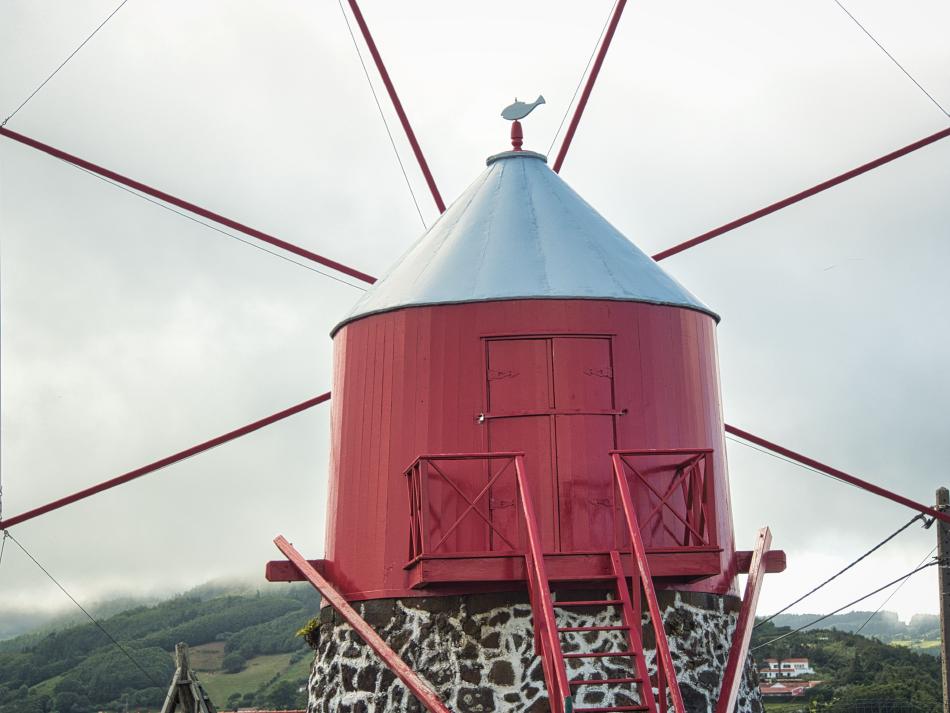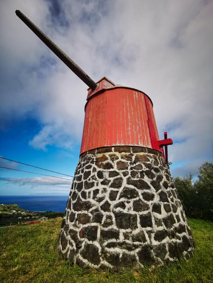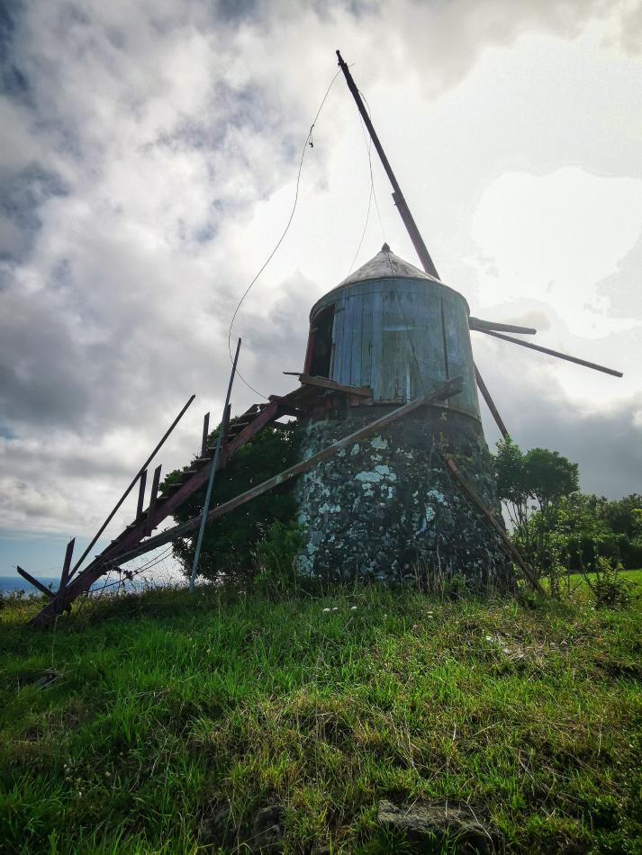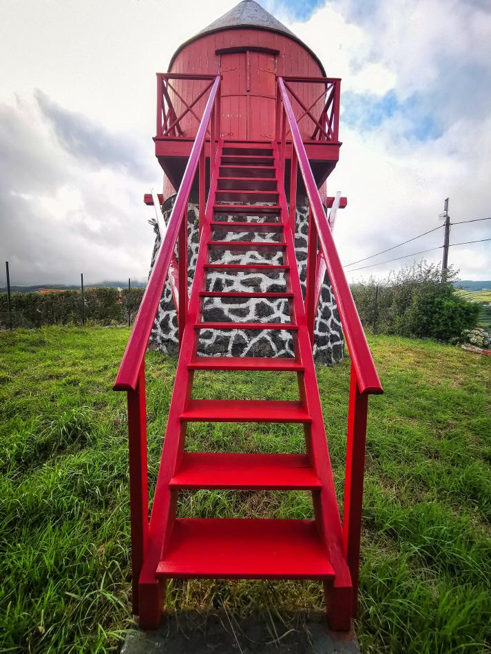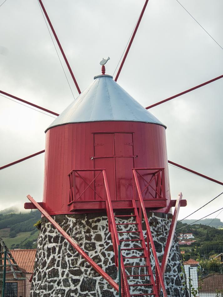 Die azoreanischen Windmühlen stehen alle erhöht auf einer gemauerten Fundament. Auf dem Fundment befindet sich dann ein hölzerner Raum. Hier hinauf führt meist eine hölzerne Treppe. Von Oben hat man natürlich nochmal eine bessere Aussicht – wenn man der Stabilität der Treppe noch traut.