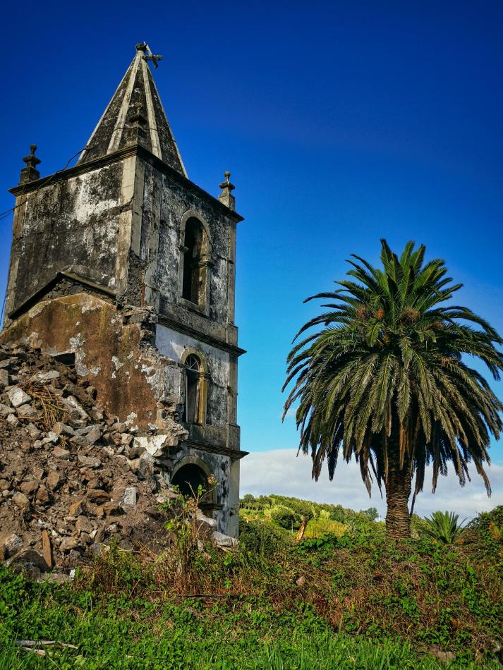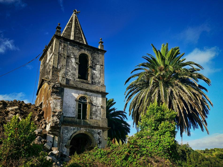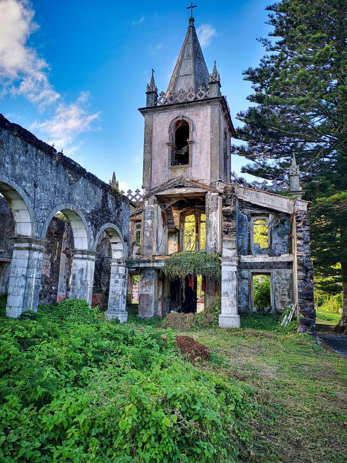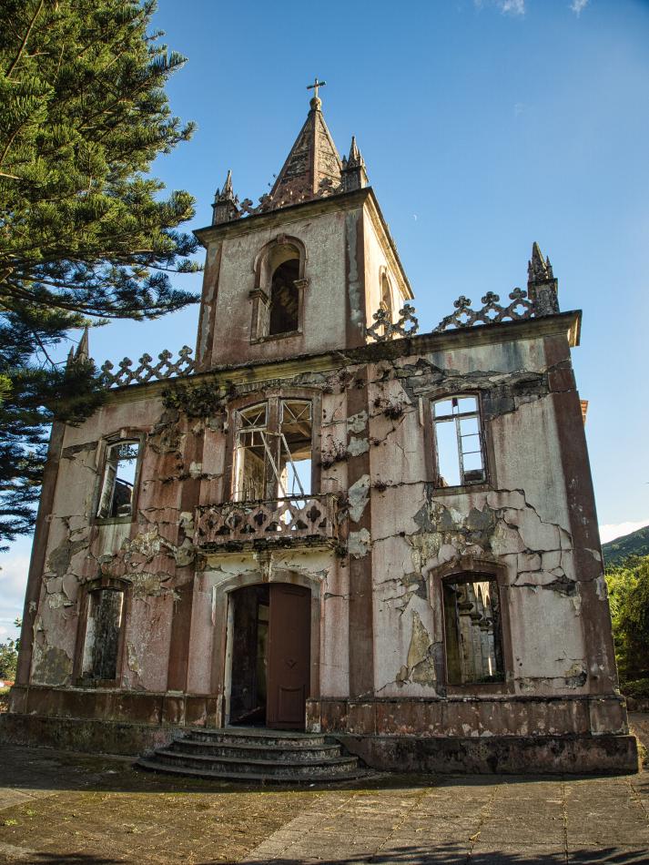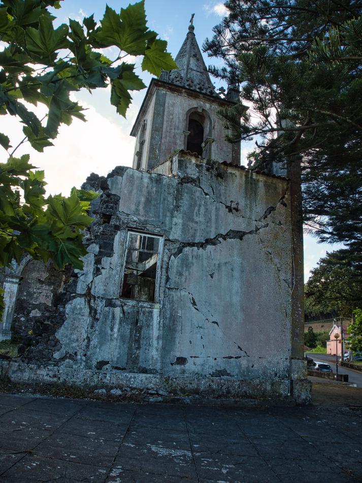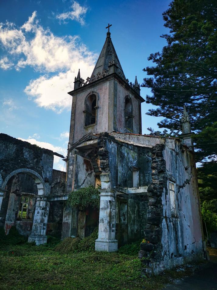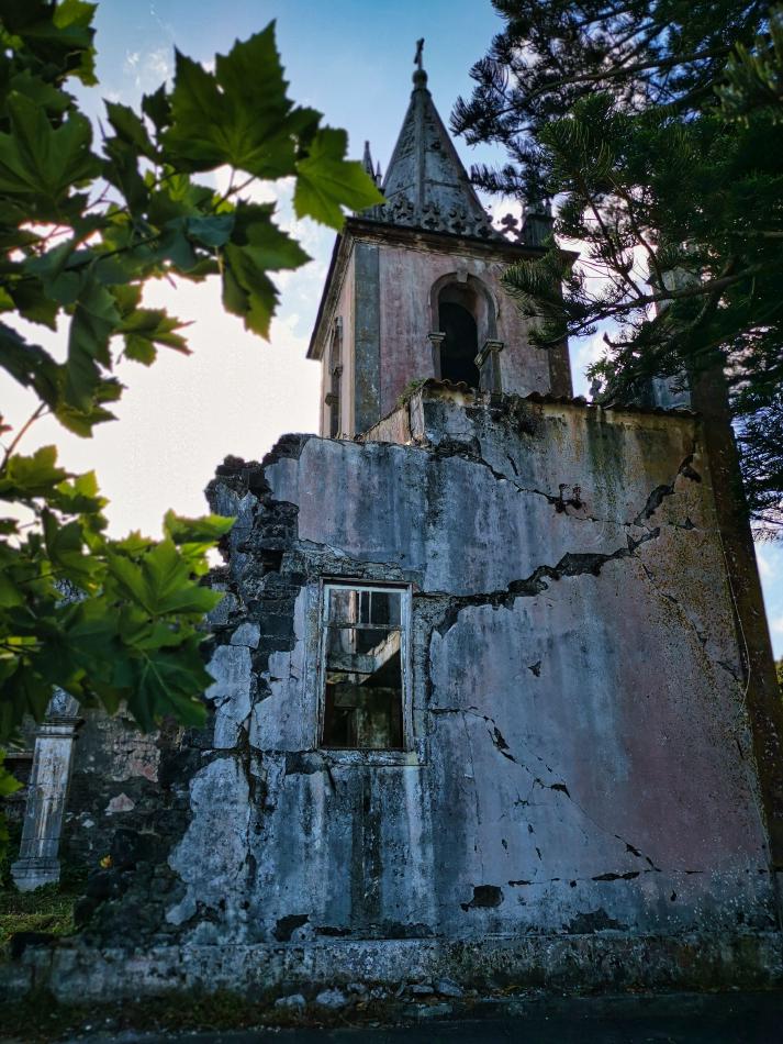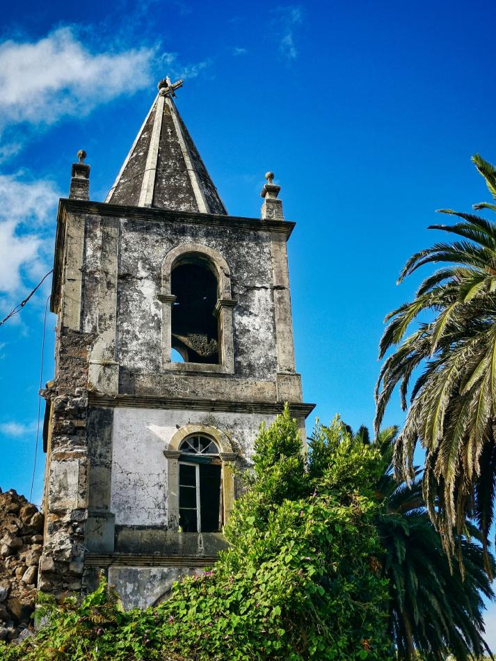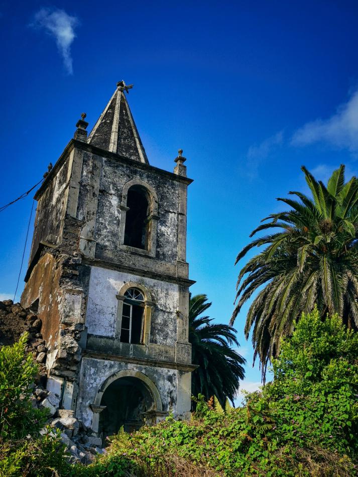 Auf dem Weg weiter nach Norden nach Ribeirinha sind wir durch den Ort Chã da Cruz gekommen, in dem zufälligerweise auch eine zerstörte Kirche stand. Als wir die Ruine gesehen haben, sind wir auch hier einfach kurz angehalten um uns die Ruine etwas genauer anzusehen. Leider war um das ganze Gebäude ein Bauzaun gestellt, sodass wir nicht näher an die Kirche heran kamen – trotzdem war sie schon von außen wunderschön.