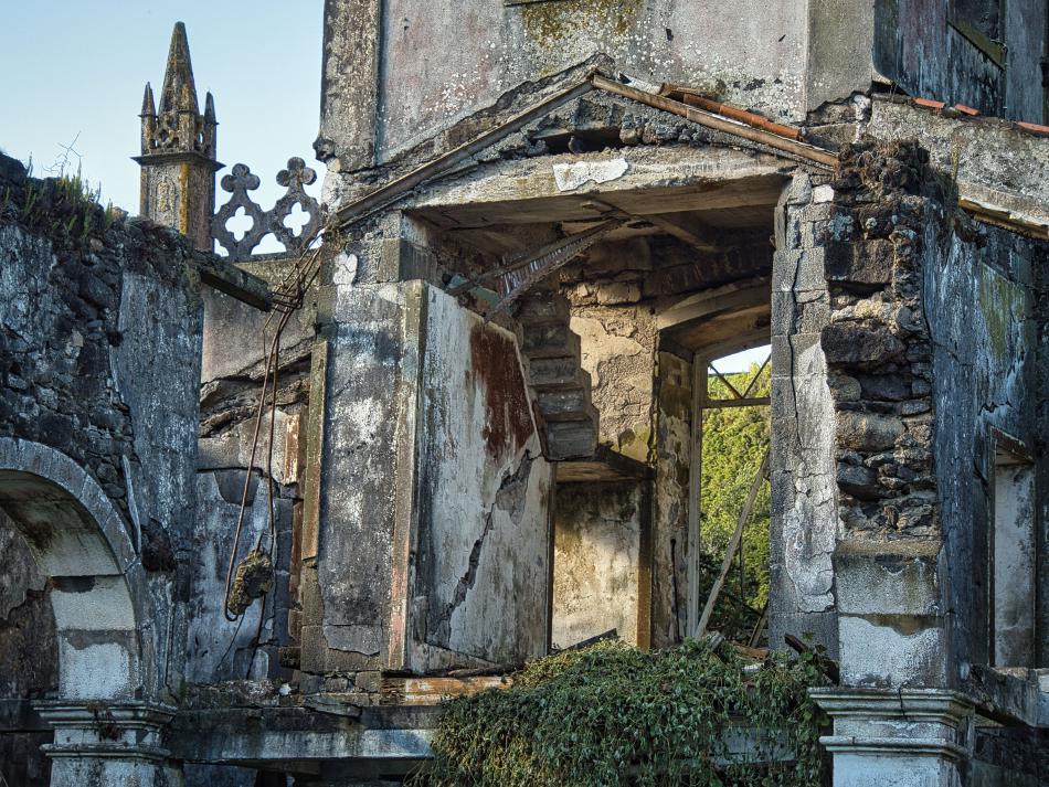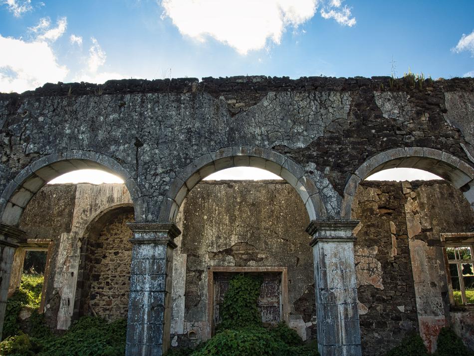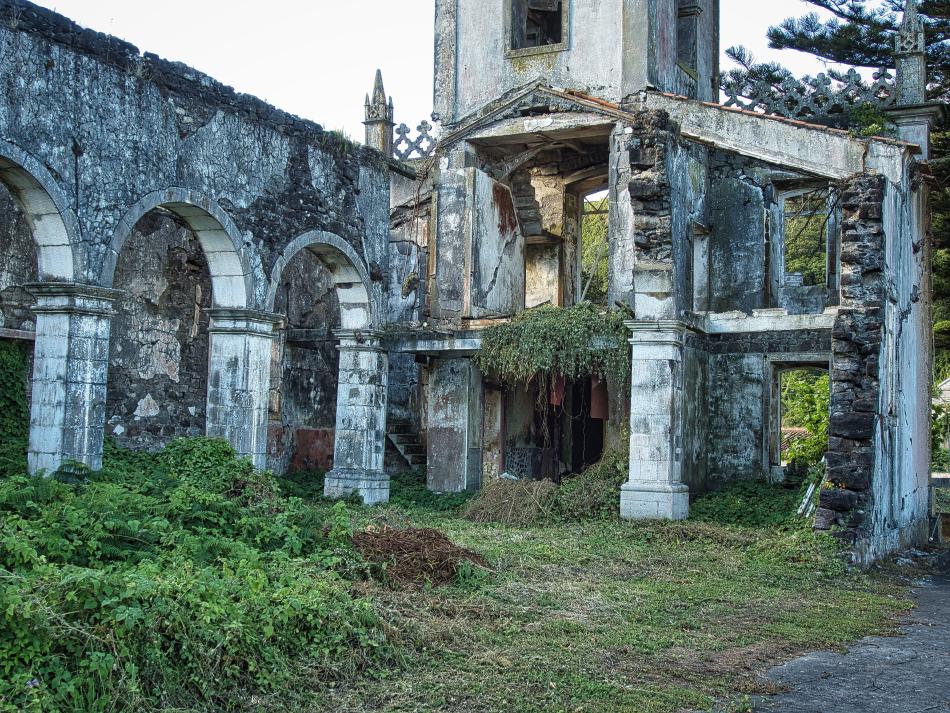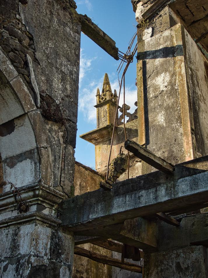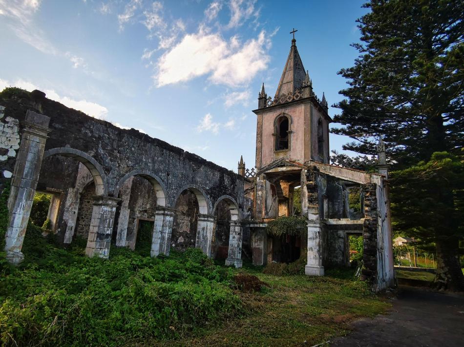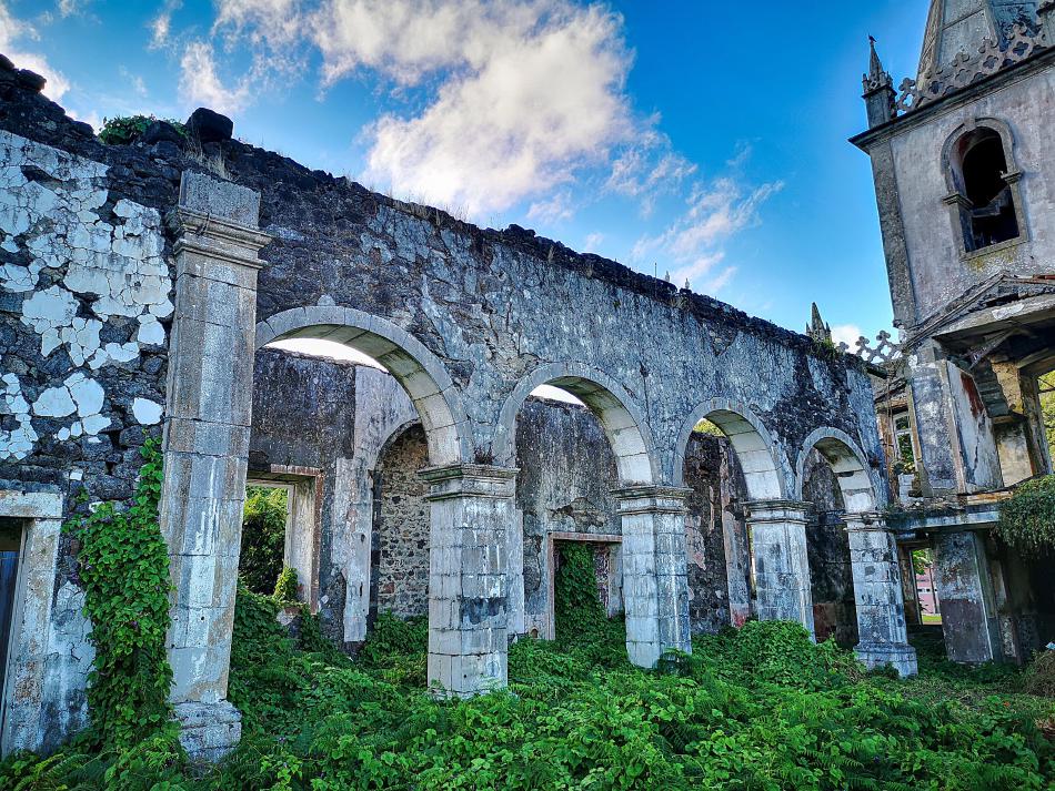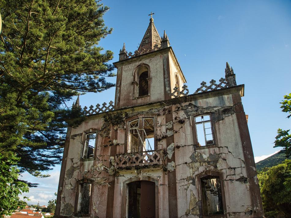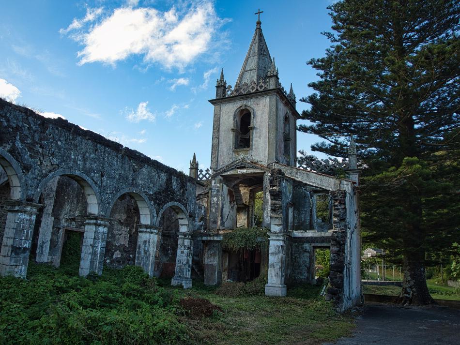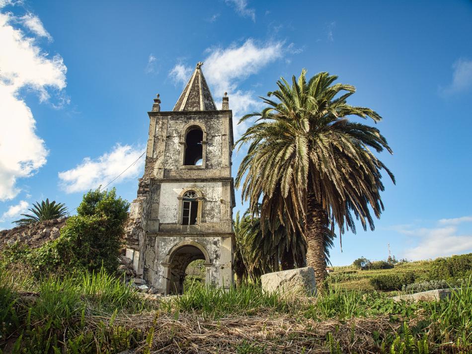 Auf dem Weg weiter nach Norden nach Ribeirinha sind wir durch den Ort Chã da Cruz gekommen, in dem zufälligerweise auch eine zerstörte Kirche stand. Als wir die Ruine gesehen haben, sind wir auch hier einfach kurz angehalten um uns die Ruine etwas genauer anzusehen. Leider war um das ganze Gebäude ein Bauzaun gestellt, sodass wir nicht näher an die Kirche heran kamen – trotzdem war sie schon von außen wunderschön.