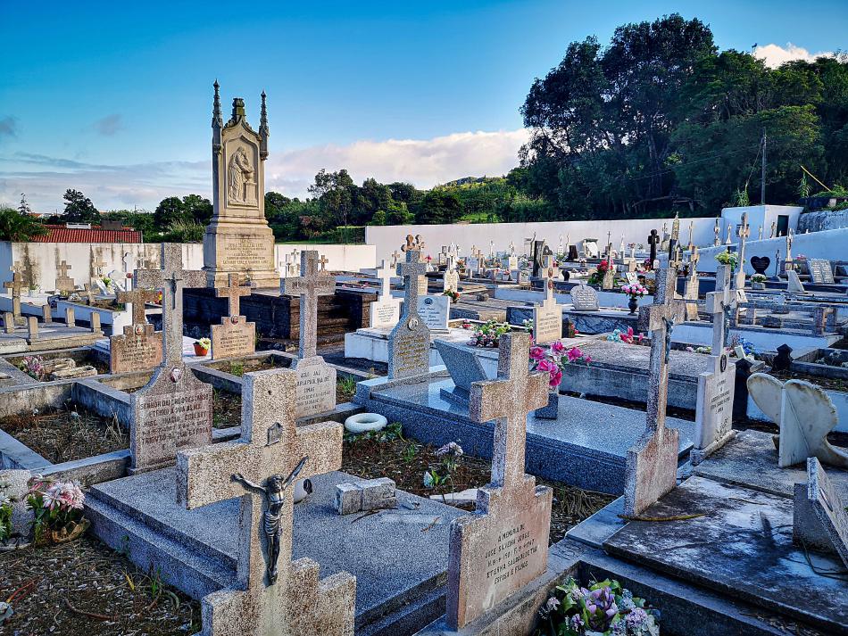 Neben der Kirche befindet sich der dazugehörige Friedhof. Die Gräber hier werden noch immer sehr akkurat gepflegt – und offenbar auch noch genutzt. Einige Gräber hier sind noch gar nicht so alt gewesen, ein Grab war beispielsweise von 2016, andere aber auch von 1992 oder auch aus den 80ern. Portugiesische Gräber sind übrigens bei weitem nicht so grün wie die hiesigen. Hier wird viel mehr mit schönen Steinen gearbeitet, als mit Bepflanzung.