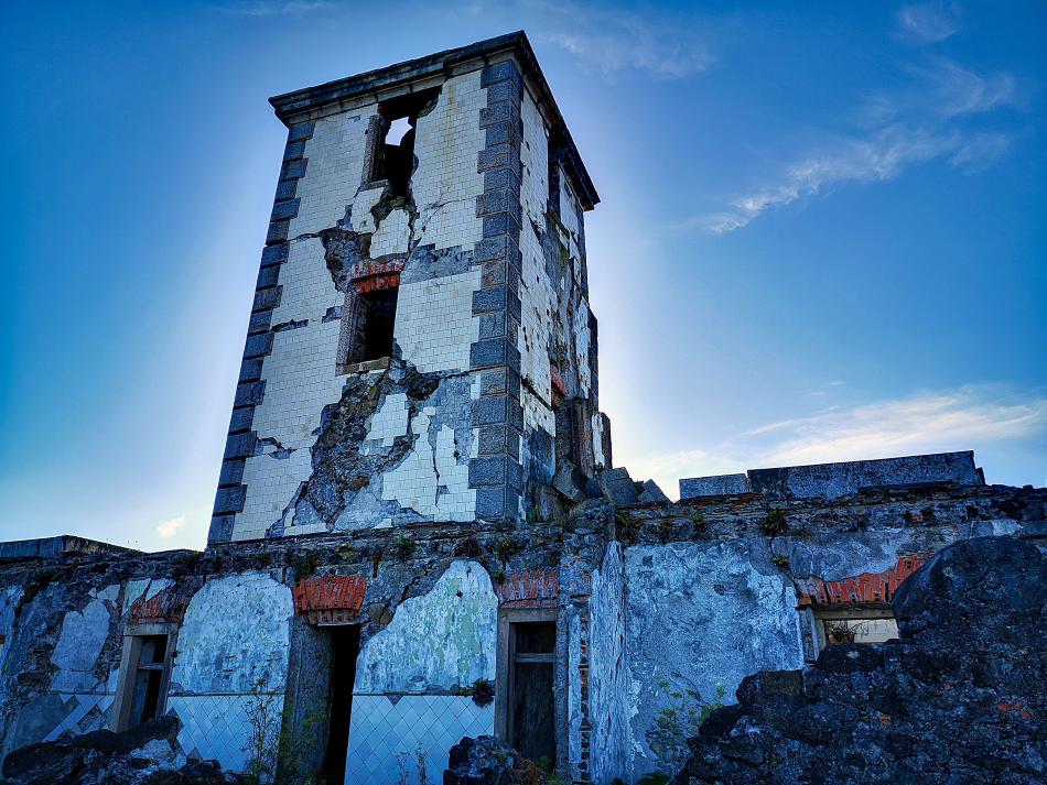 Wir waren noch fit genug, dass wir uns entschieden haben unsere Tagestour nicht mit dem nördlichen Ende von Horta zu beenden, sondern noch etwas weiter in Richtung Norden zu fahren. Hier wollten wir nämlich noch den Ort Ribeirinha besuchen, in dem es sowohl eine Kirchenruine als auch die Ruine eines alten Leuchtturms gab.
