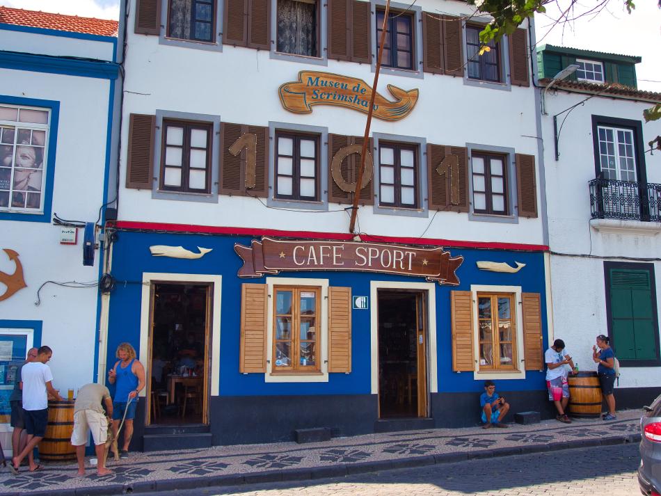Inzwischen war es schon fast 15:00 Uhr und wir hatten noch kaum etwas gegessen. In Horta befindet sich, direkt am visuellen Highlight, der Marina (dazu später mehr), das uralt eingesessene Peter Cafe Sport. Um dem knurren unserer Mägen etwas entgegenzusetzen, haben wir also als nächstes den Pflichtbesuch beim Peter Cafe Sport absolviert.