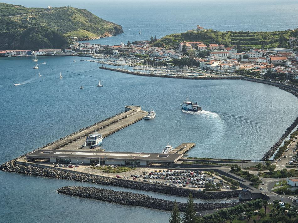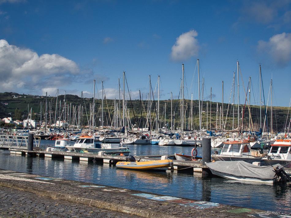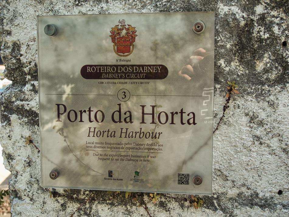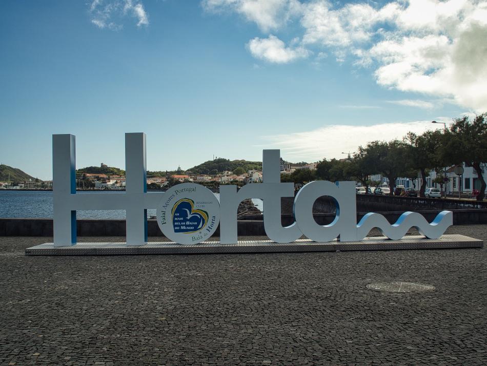 Von der Marina sind wir wieder zurück zum Auto gelaufen. Den Weg, den wir gelaufen sind, haben wir danach wieder mit dem Auto aufgeholt und sind in Richtung Norden gefahren. Hinter der Marina befindet sich noch der Fährhafen, von wo aus wir ein paar Tage später weiter nach São Jorge fahren sollten. Hier direkt am Fährhafen gab es noch einen menschengroßen Horta-Schriftzug, den wir natürlich noch kurz fotografiert haben, bevor wir endgültig die Stadt verlassen haben.