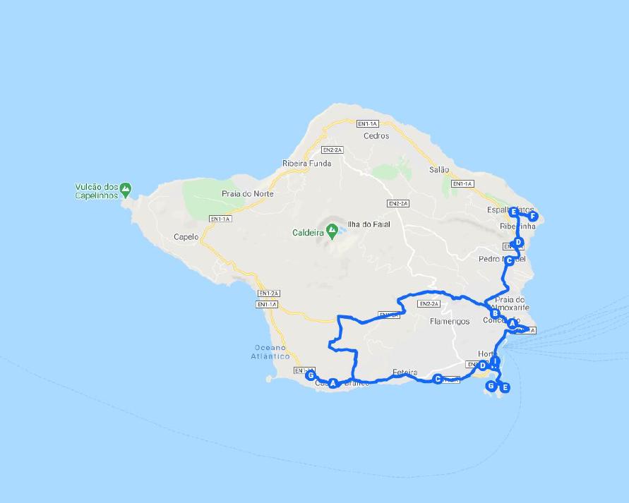 Nachdem wir in unserer neuen Unterkunft, die eher einem riesigen Park, als einer Touristenabsteige glich, eingecheckt hatten und unsere Koffer in unser Zimmer gebracht hatten, wollten wir als erstes wieder einkaufen gehen. Da jedoch Sonntag war, mussten wir etwas suchen und haben über Google Maps einen Supermarkt in der Hauptstadt von Faial, Horta, gefunden. Auf dem Weg zu dem Supermarkt fuhren wir wieder am Flughafen vorbei – Faial hat hier im Süden eine sehr gut ausgebaute Straße, die u. a. den Flughafen und die Hauptstadt verbindet.